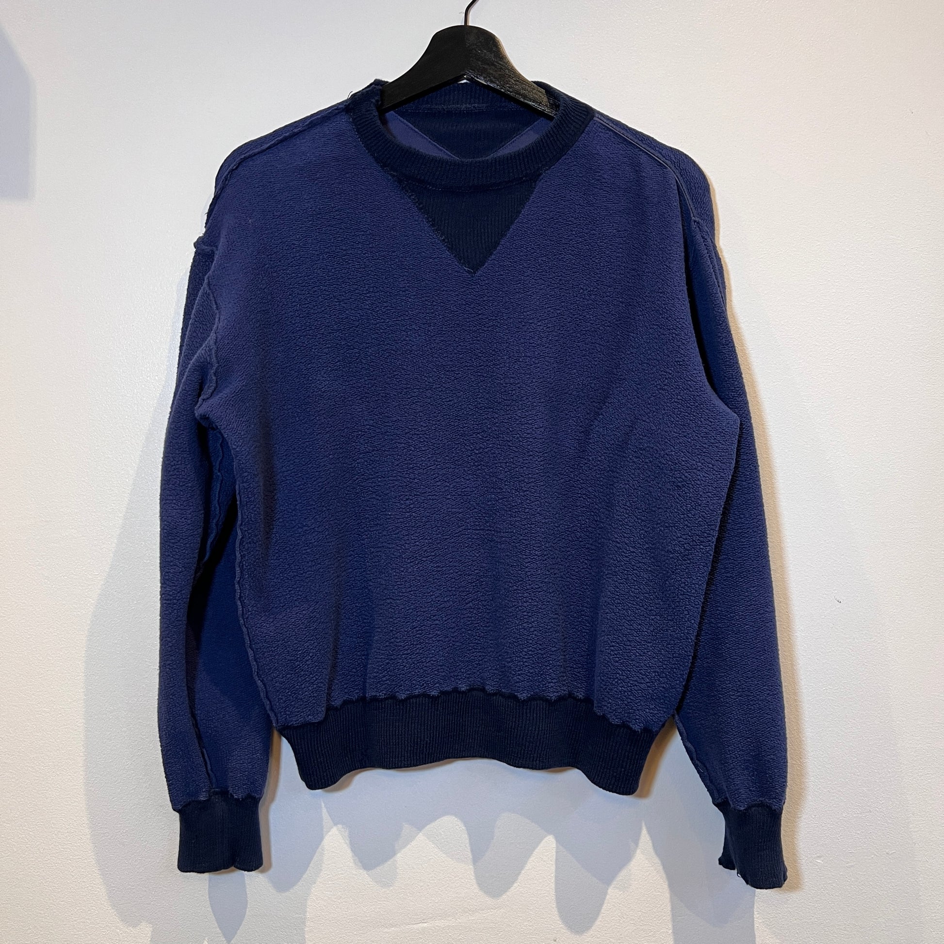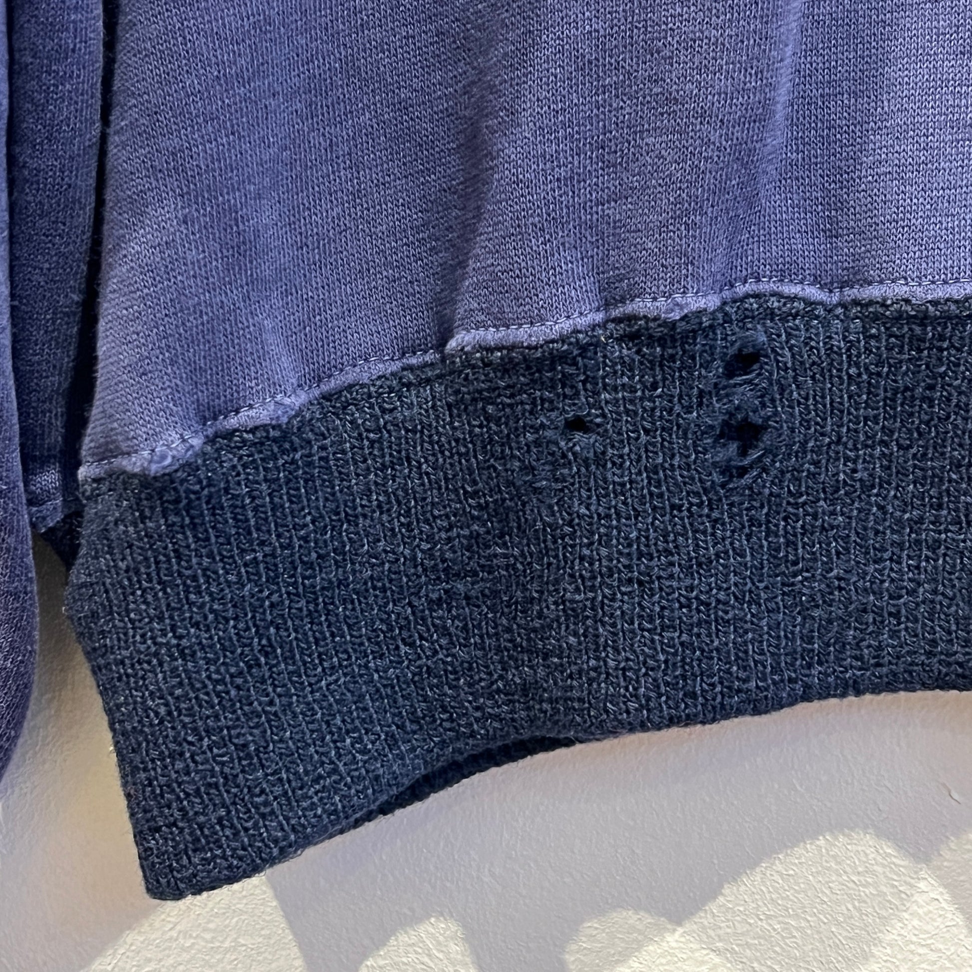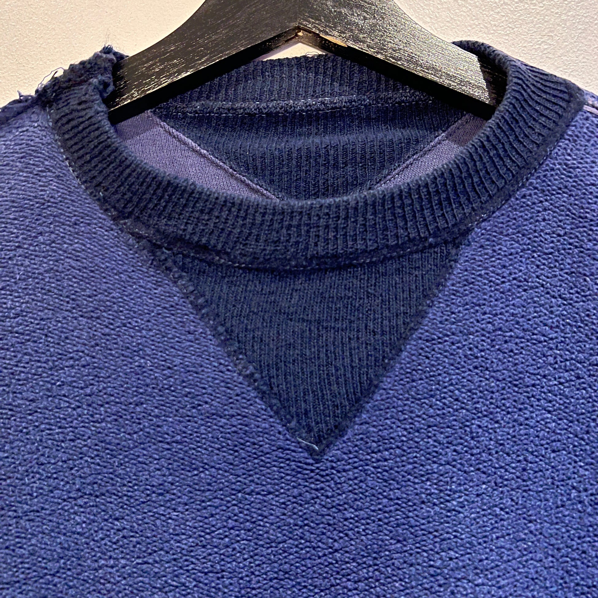 1940s 2 Tone Faded Navy Blue Double V Cotton Crewneck Sweatshirt