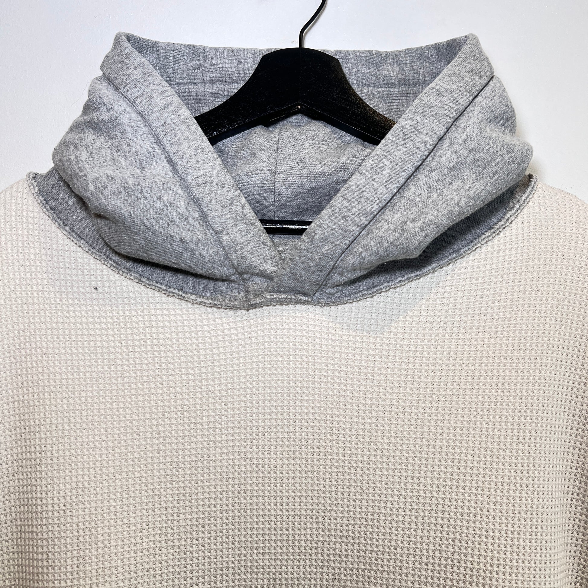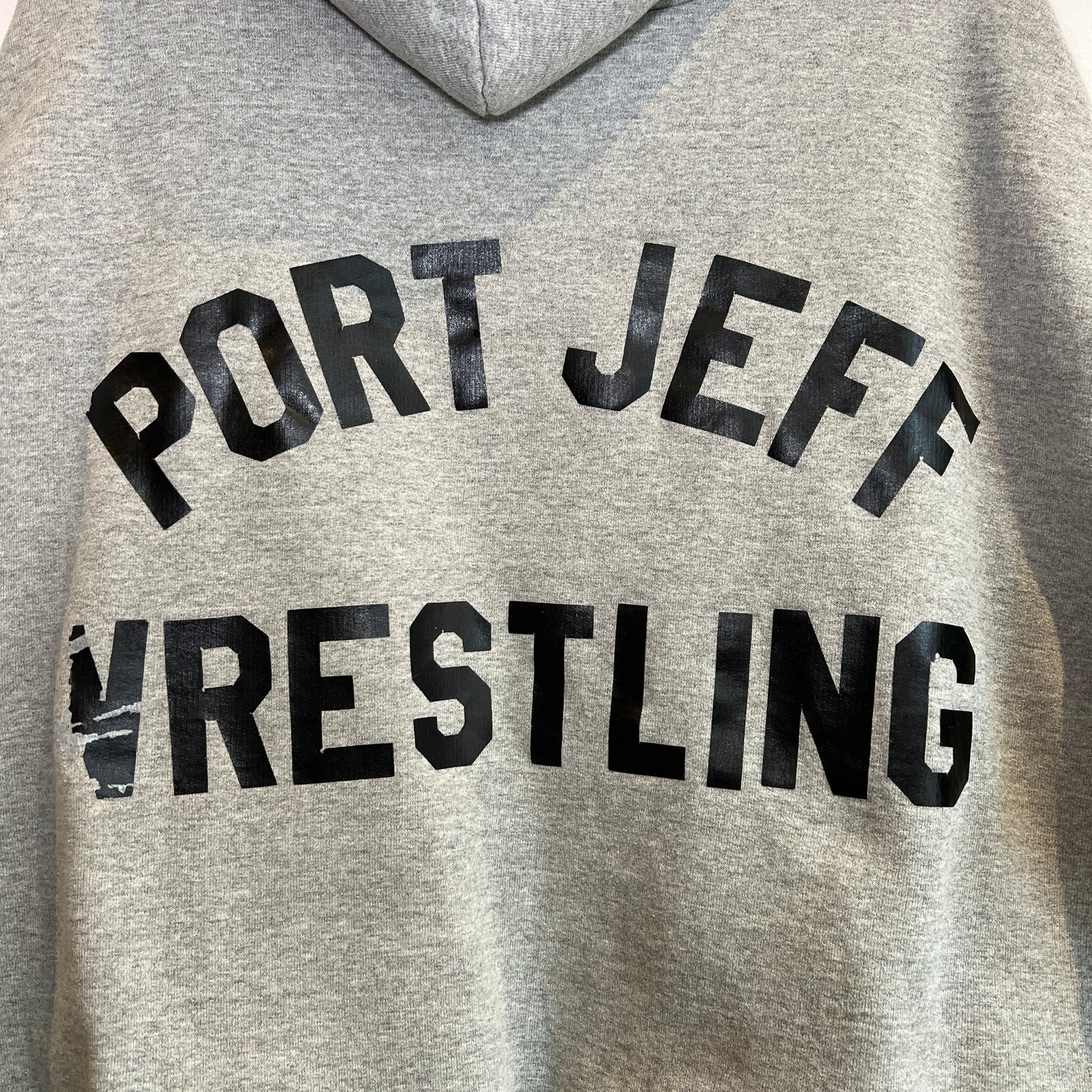 1990s Camber Medium Heather Grey Waffle Thermal Lined Hoodie Super Boxy Sweatshirt with Port Jeff Vrestling Print