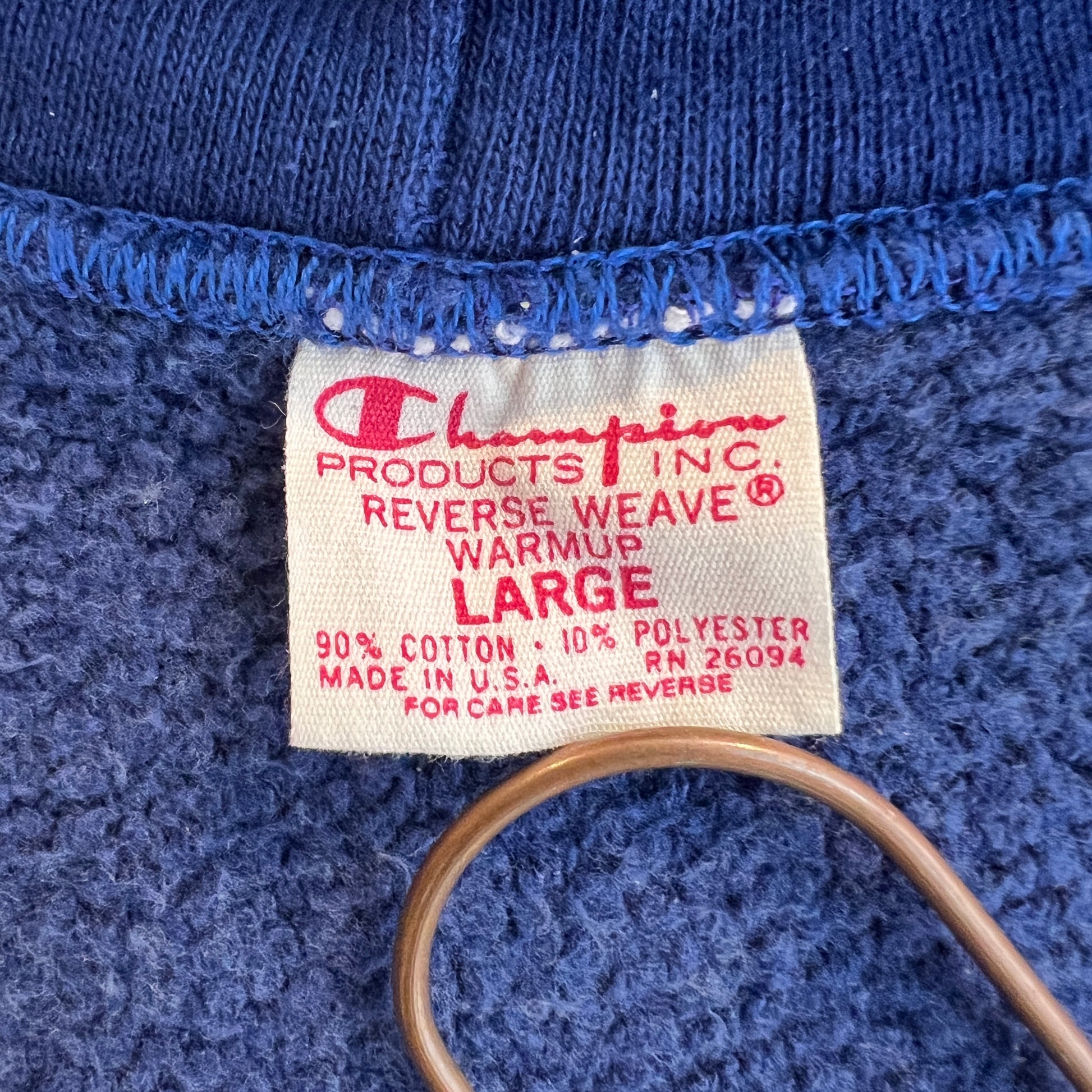 1973s ~ 1975s Champion Single Color Tag Blue Hoodie Sweatshirt with Blare Print