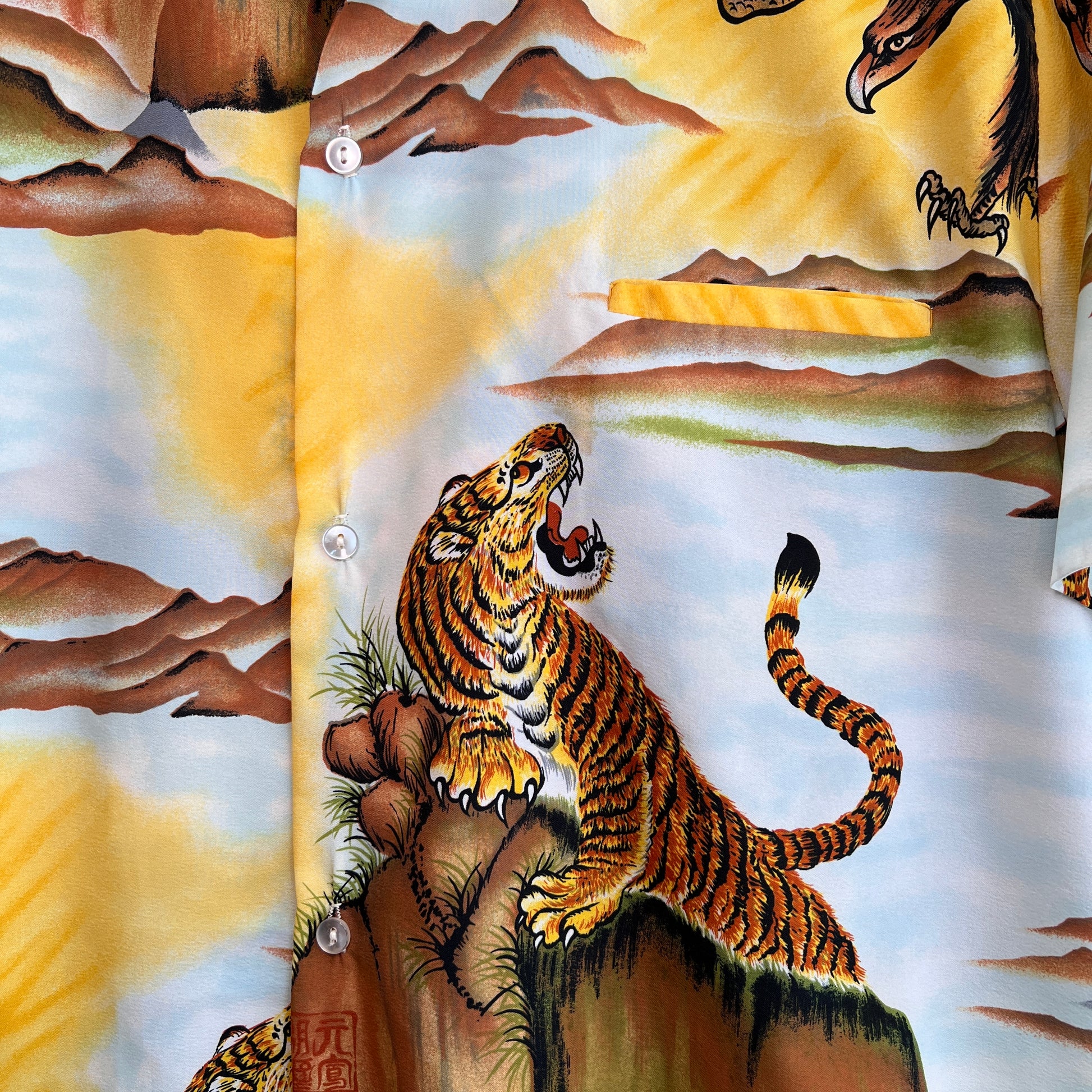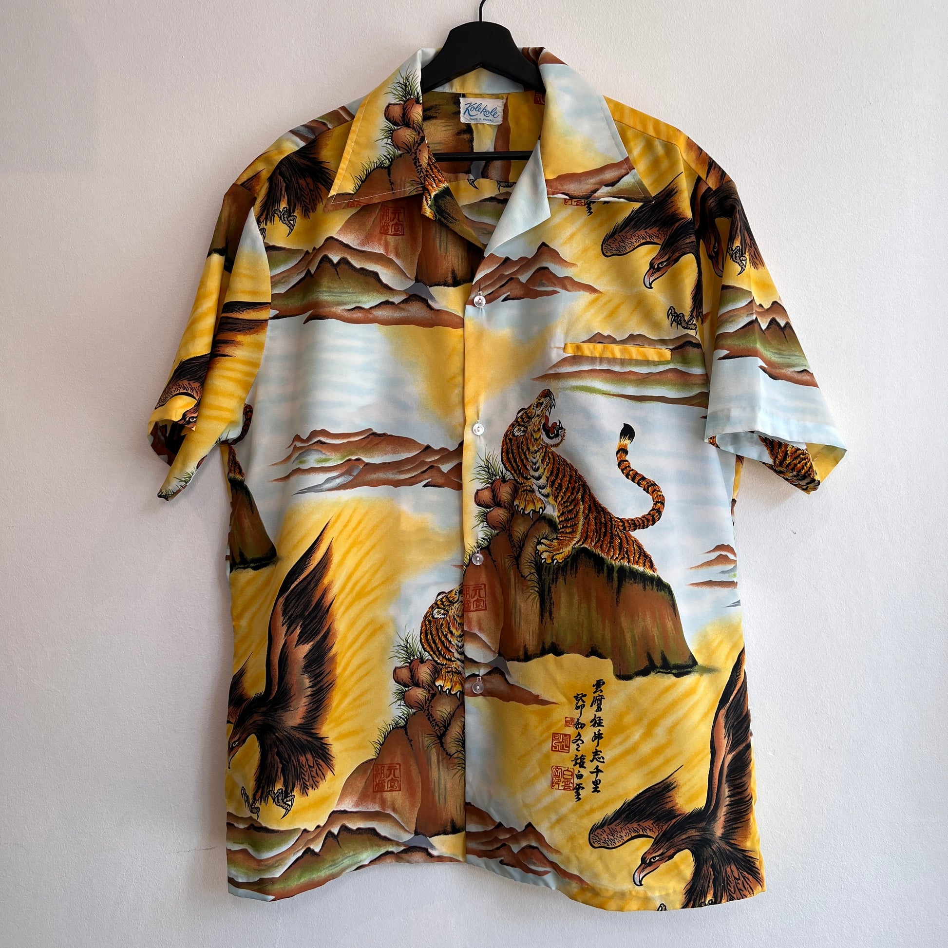 1970s KoleKole Hawaiian Shirts with Tiger and Eagle Print