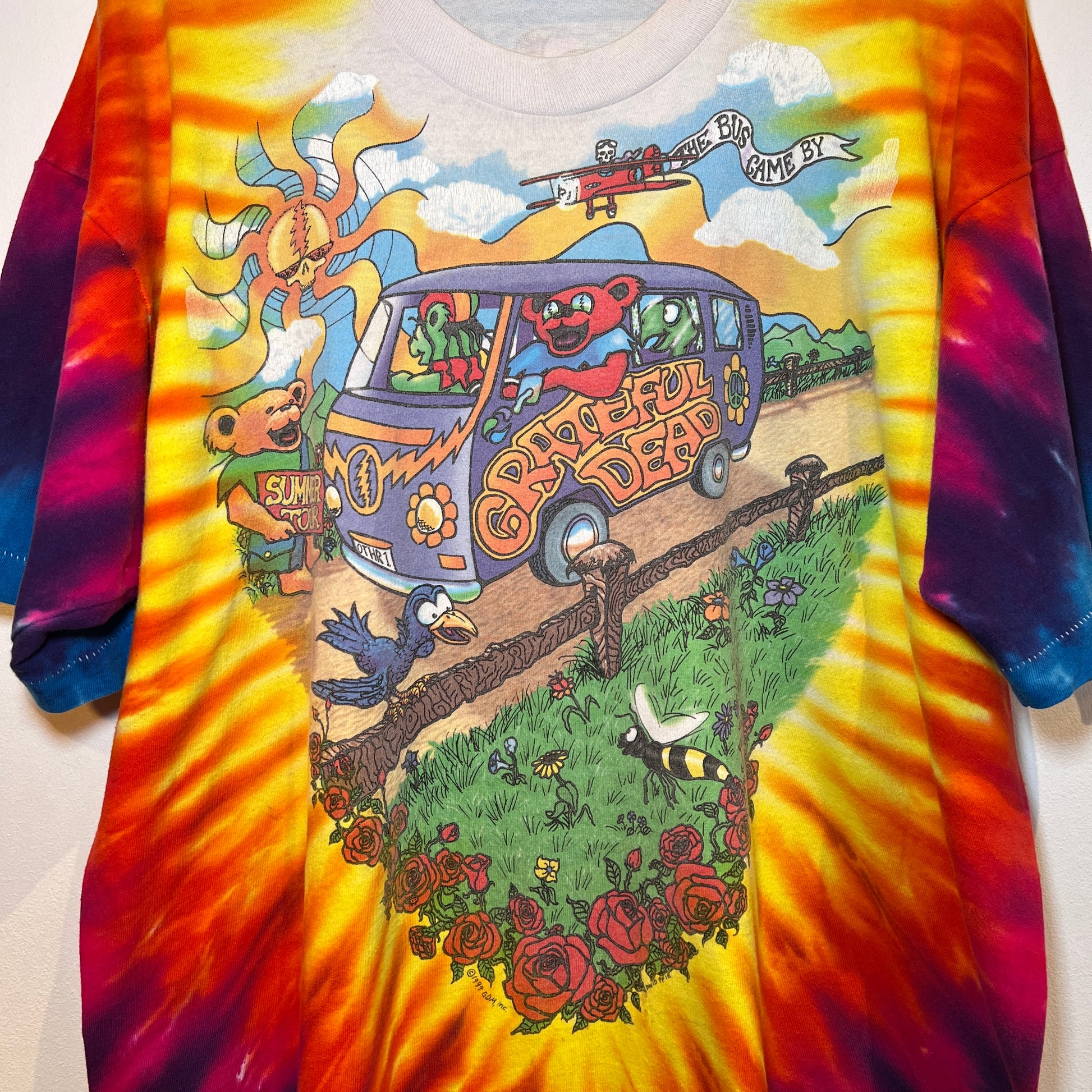 1994s Grateful Dead Tie Dye T-Shirt with Summer Tour Bus Print