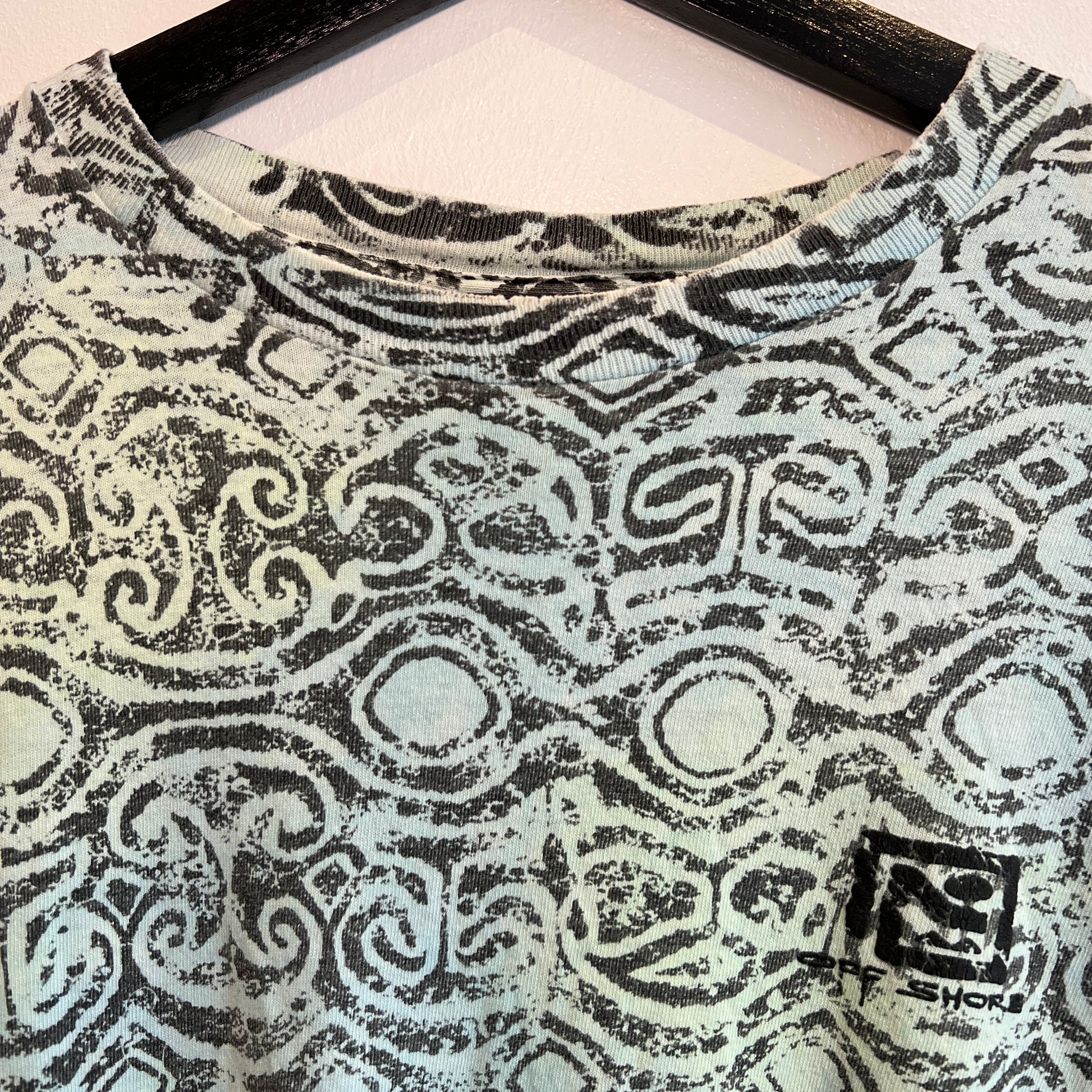 1990s Off Shore T-Shirts with Abstract Geometric and Flock Print Logo