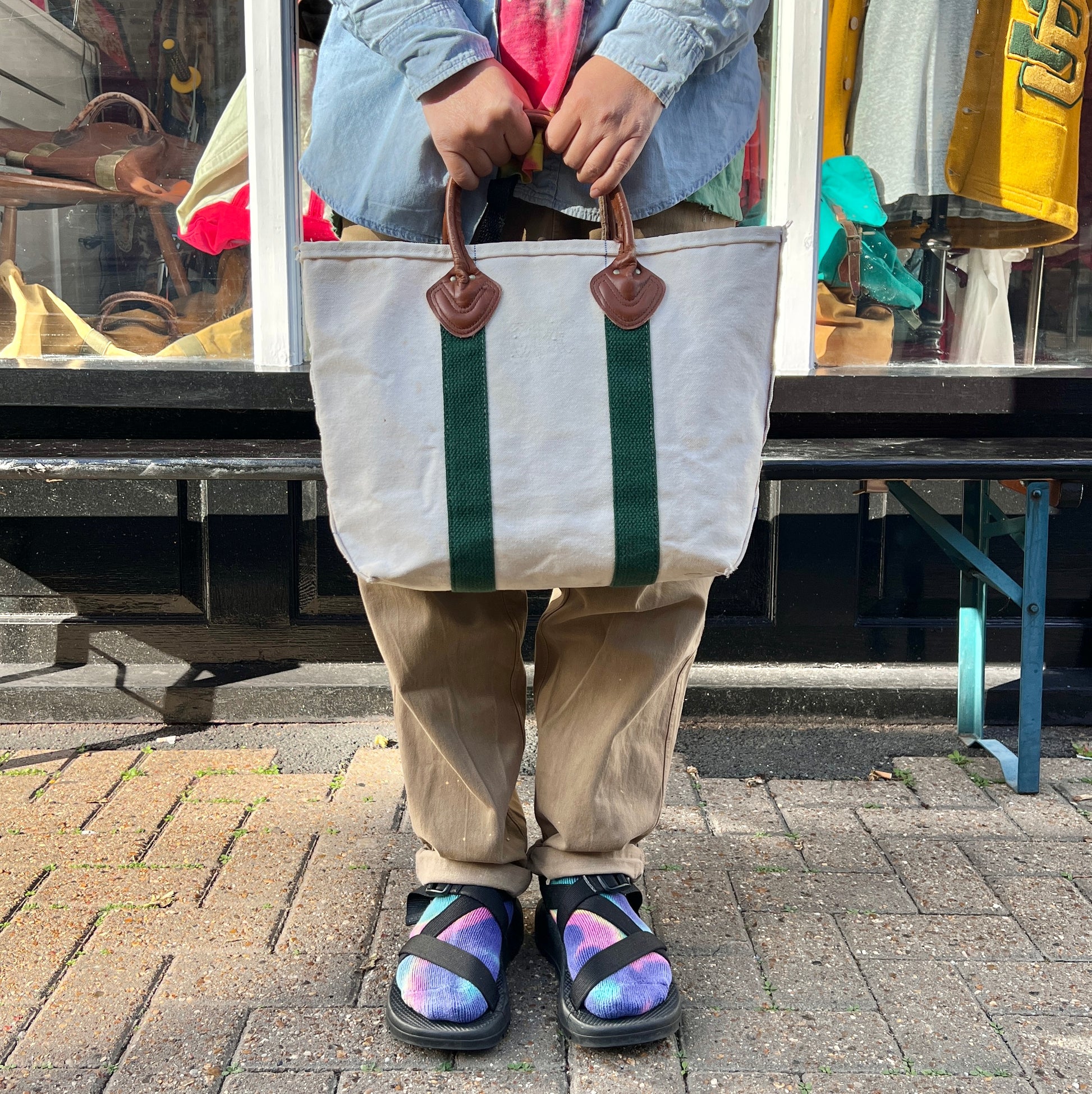 1970s L.L.Bean Purple Beige Small Boat and Tote Bag