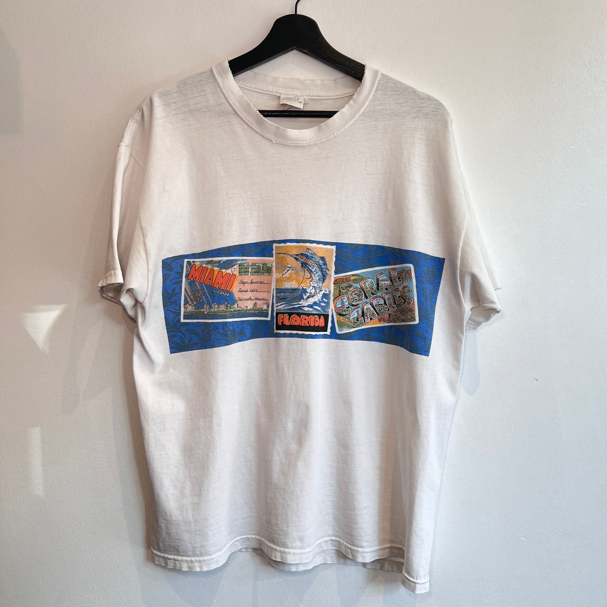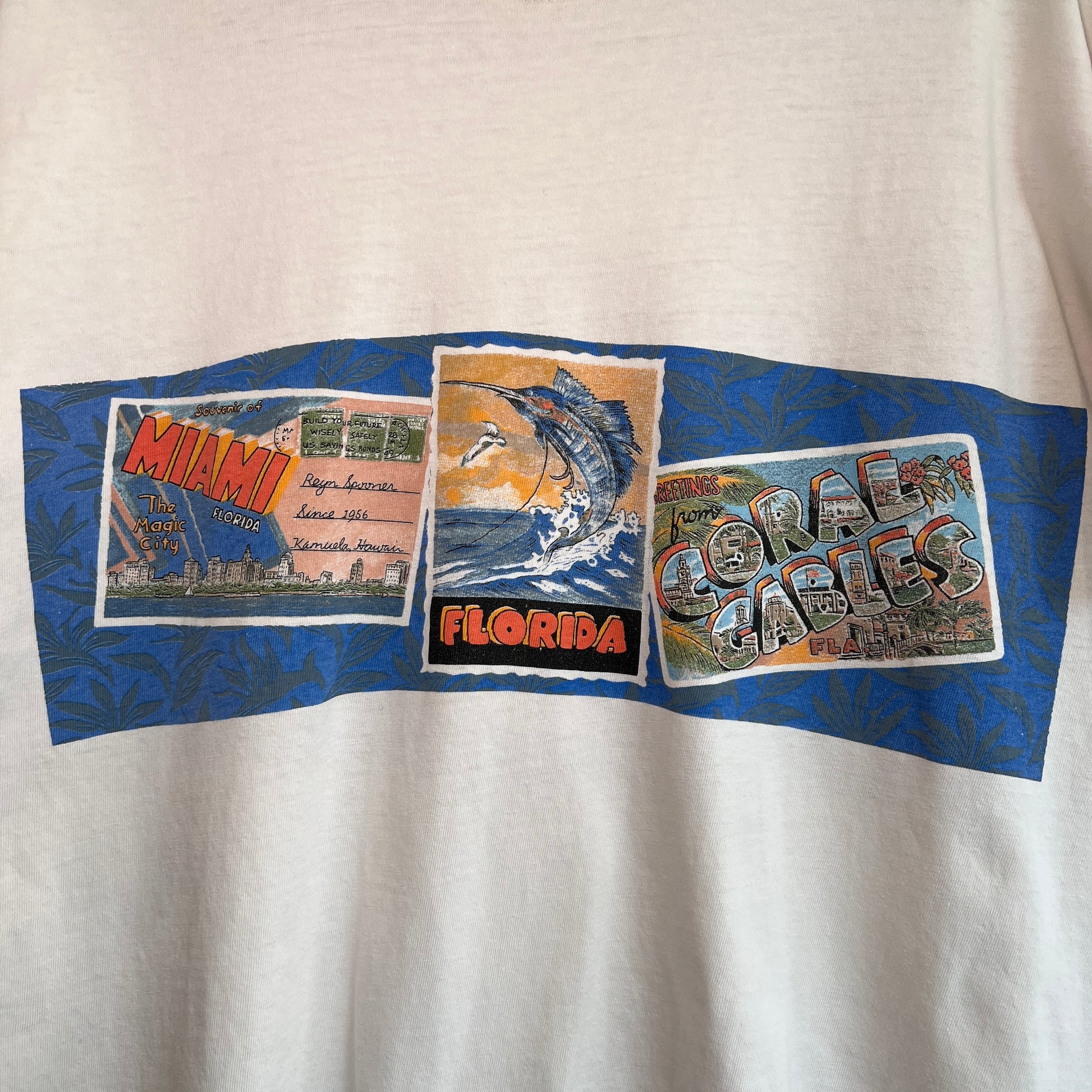 1990s Reyn Spooner T-Shirts with Miami Florida Postcard Dual Print